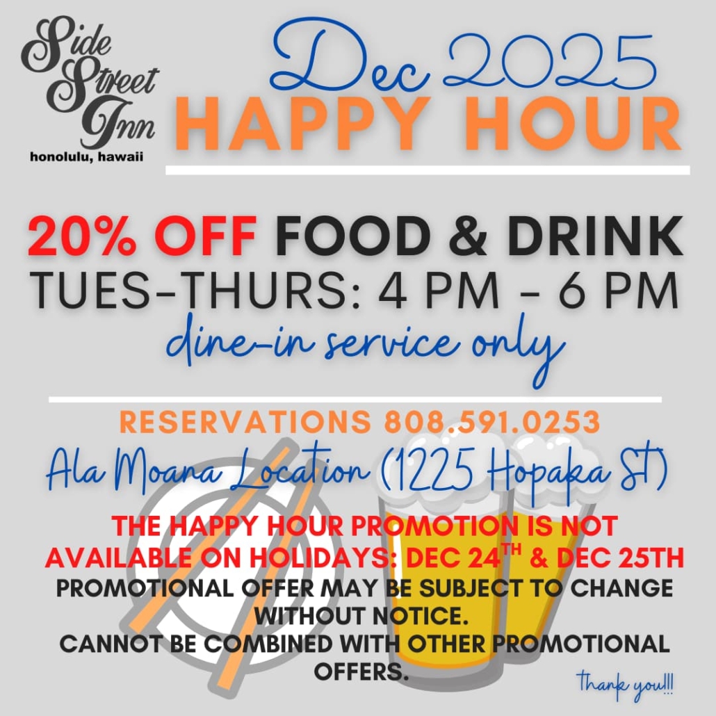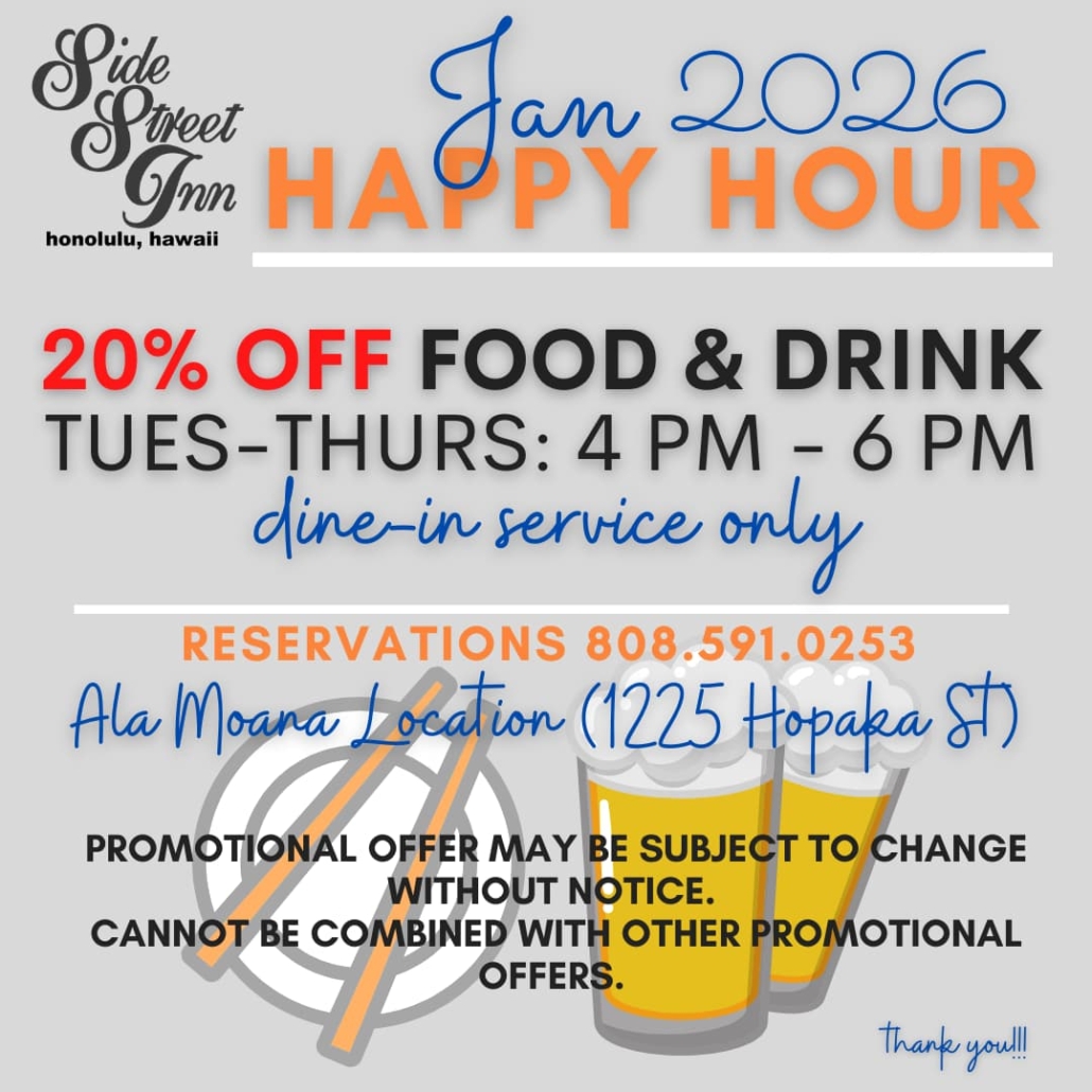$8 (available Tuesday – Sunday from 4:00 pm)