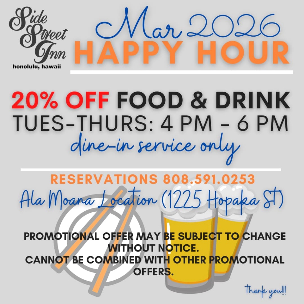 $7 (available Tuesday – Sunday from 4:00 pm)