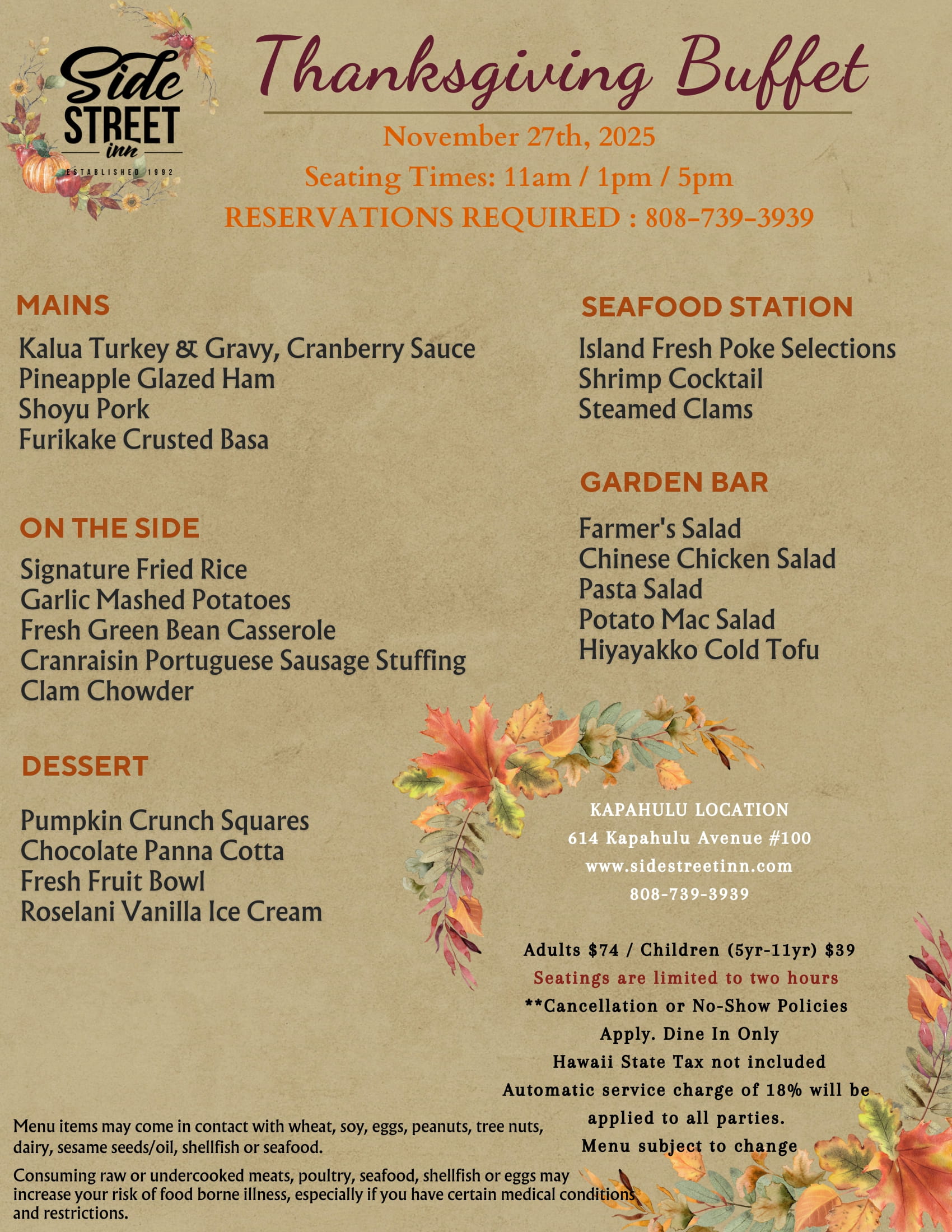 Parking also available at Blackfield Building (located directly across the street of the restaurant) $3 per hour.